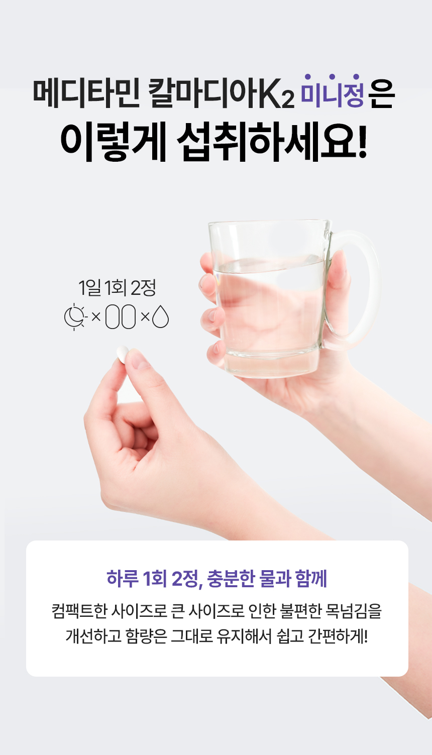 | 섭취량, 섭취방법 및 섭취 시 주의사항 및 부작용 가능성 | 1일 1회, 1회 2정을 물과 함께 섭취하십시오. | ||
